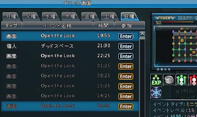 遊んでいると参加ウィンドウが開かれるのがこのゲーム。鍵の色を揃えて宝箱を開けていくパズルゲーム。多くの経験値(Lv次第だが7万ぐらい入ることも)がもらえるのと、ギルド貢献が+5されるので積極的やってみよう。