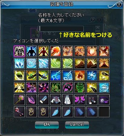 登録完了。装備セットの種類に合わせて2個以上作る。