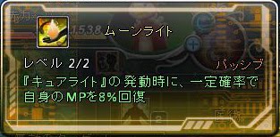 キュアライト発動時に、一定確率で自身のMP4%(2/2で8%)回復。